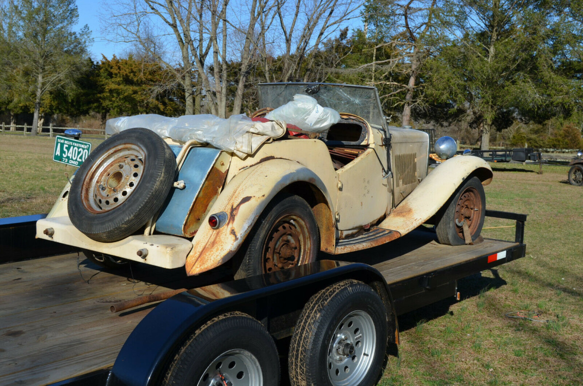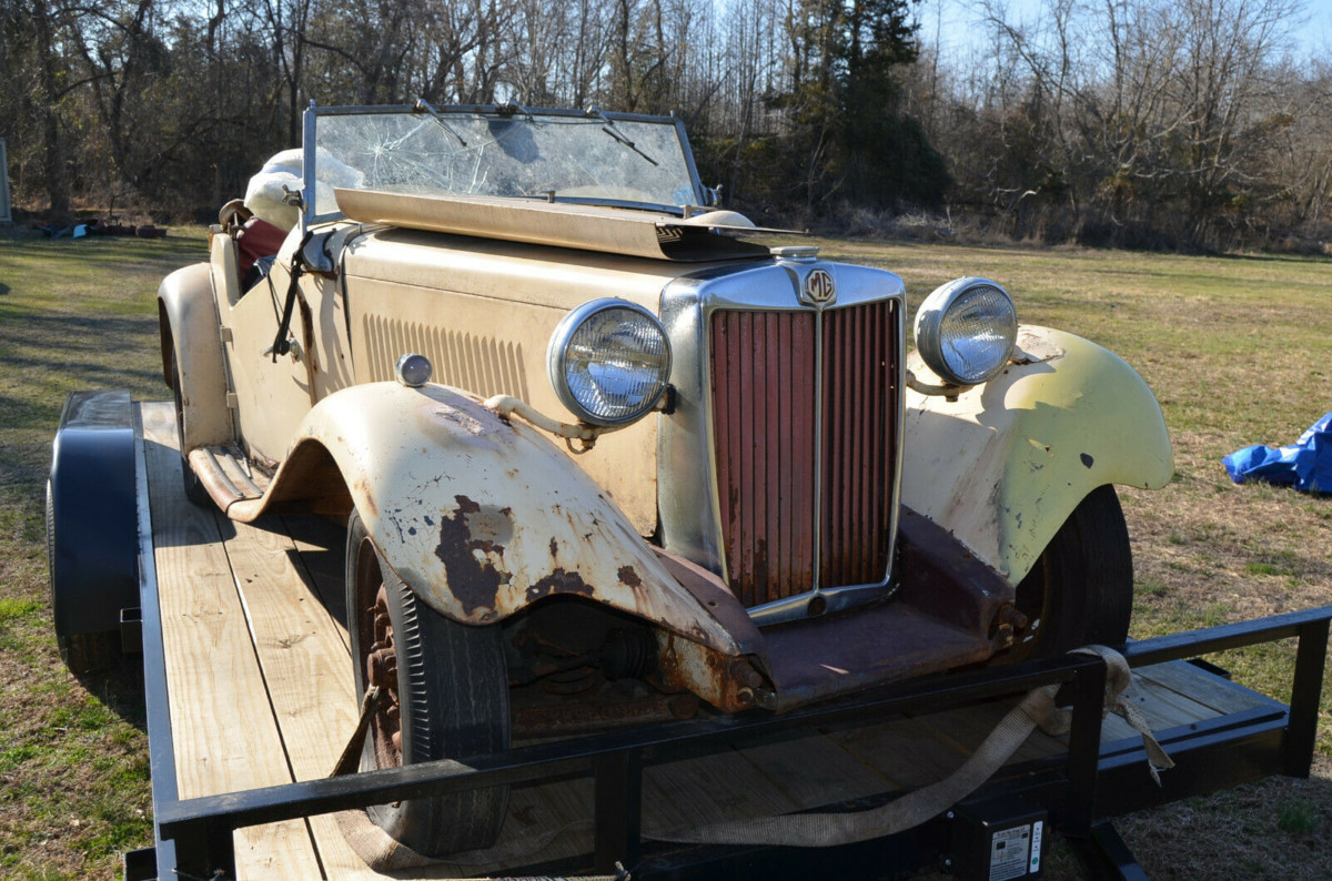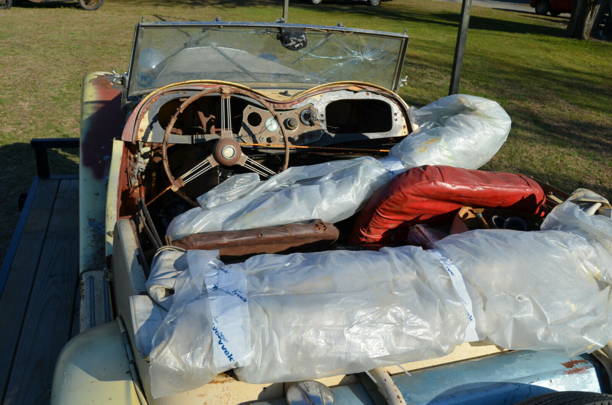 I do wish folks would take the car off the trailer for at least some of the pictures. Since the auction description doesn’t include much information, let’s determine what we can from the pictures and what we know about MG TDs. The TD was created as a way of modernizing the classic TC design, making it more up-to-date (except for the traditional styling) and easier to manufacture than the TC, which to be honest was more successful, especially in the US market, than anyone anticipated. Disc wheels and an updated front suspension became standard on the TD. This one looks pretty typical for a T-Series find with rust along the lower parts of the central tub. It would be nice to know the serial number to research more about the car, but at least we know it has a clean title from the ad.