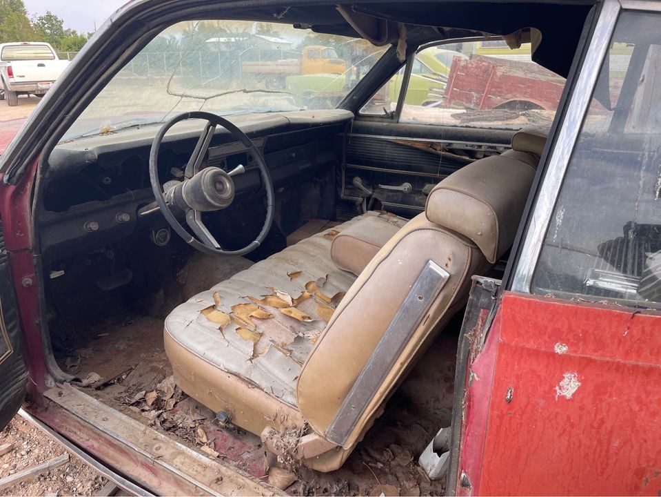 Man…it’s late as I write this, but I swear that’s a ’76 Malibu Classic bench seat in the red car…