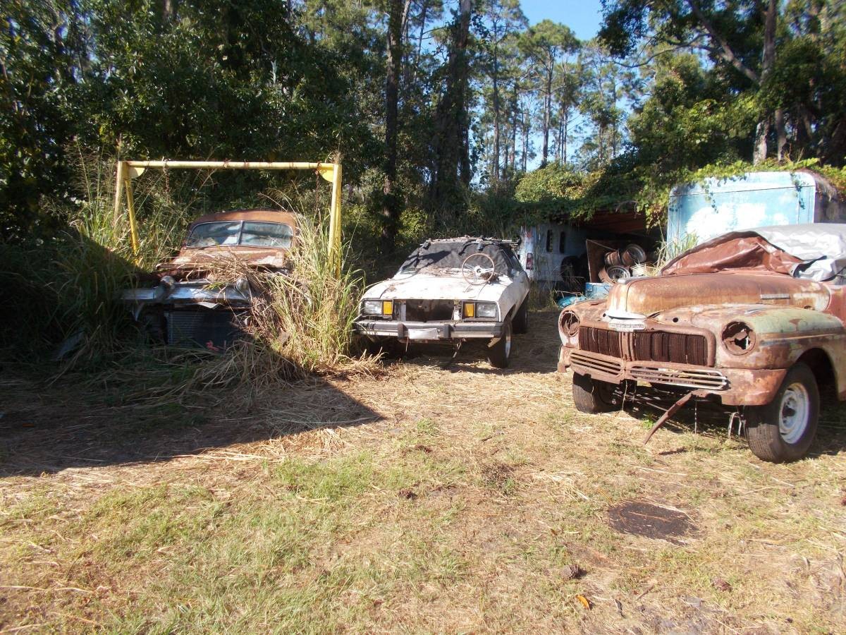 My brother-in-law and his family live in Avon Park, and actually have a metal structure similar to this in their backyard. Not nearly as many vehicles lying around, however, and the seller notes he’s got several for sale: 1941 Cadillac for $1,000; 1964 Cadillac sedan, runs for $2,000; 1970 Cadillac convertible “lead sled” listed for $7,500; 1951 Pontiac Hearse listed for $3,000; 1951 Studebaker up for grabs at $1,500; a 1956 Ford Crown Victoria Custom listed at $3000; a 1956 Ford Crown Victoria two-door for $2,000; a running 1970 Riviera for $2,000; and a 1949 Oldsmobile coupe for $5000.
