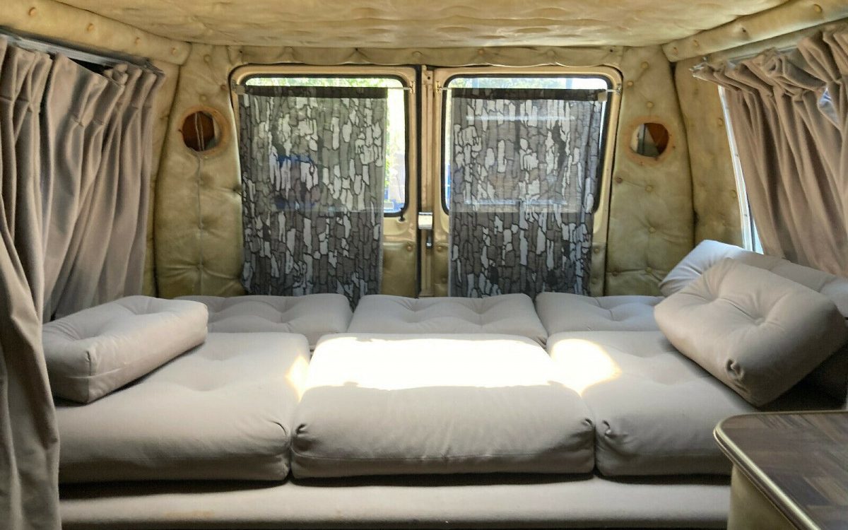 It’s got some custom bodywork to accommodate that extra axle, and it seems the people who did the customization had some liberties not only with the paint, but they also added some sunroofs. While it’s nice to look up at the stars and ponder the deepest questions of the universe like who can like really like own a tree, or how weird our hands are, there is some rust noticeable around the edges there and might be worth looking into more seriously. The seller calls it a shaggin’ wagon, and whether or not you like this style of customization, there’s definitely something to be said for a vehicle that knows what it is and is unashamed about it.