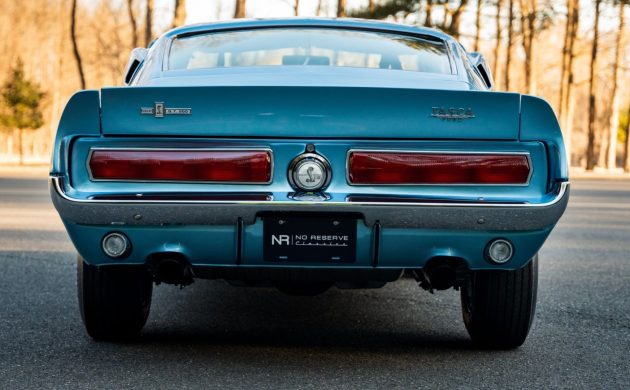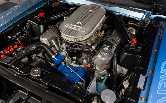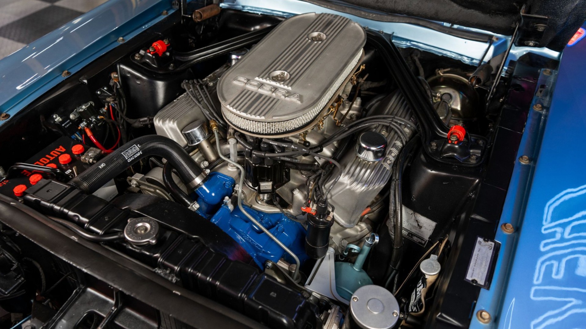 Underneath, this Shelby has been treated to a Stage 3 concours underbody restoration. That includes factory red oxide floors, KONI shocks, billet 4-piston front brakes, and a 3″ stainless steel exhaust system that gives the car a proper growl. A 9-inch Ford rear end and leaf springs keep it grounded.