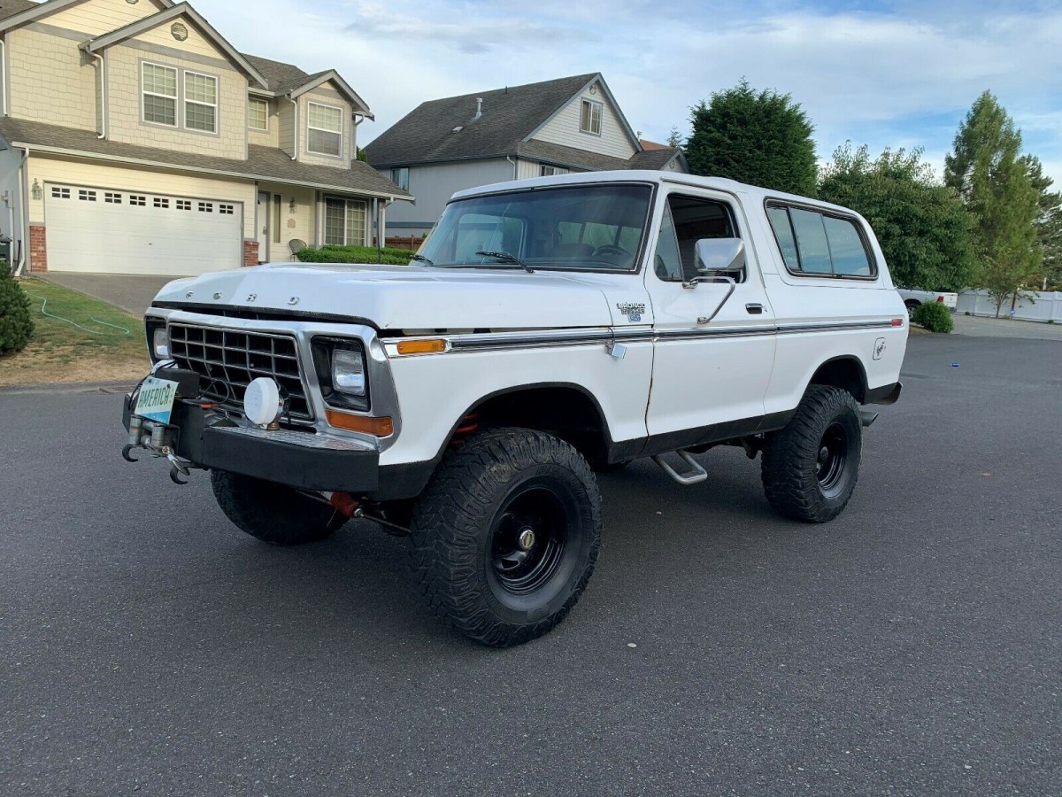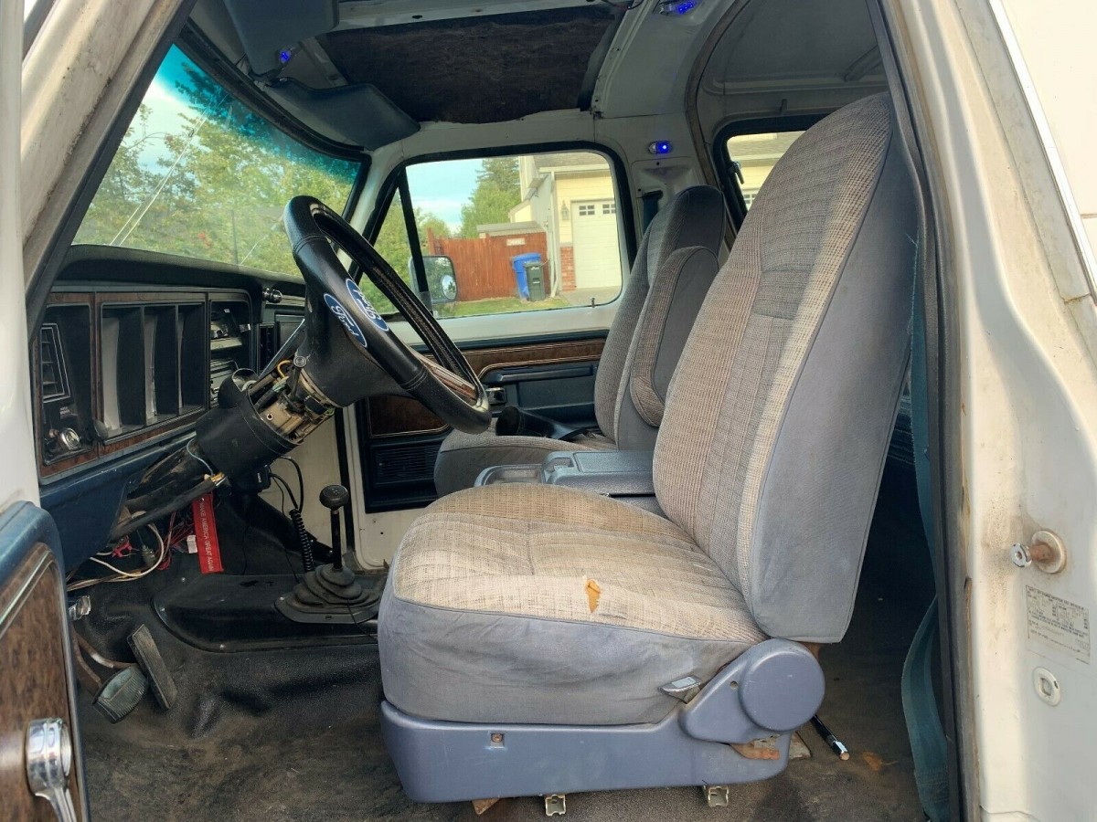 To me, lift kits of this scale really are the perfect compromise between getting some extra ride height out of the truck without making it unlivable. Perhaps it helps you more confidently traverse some slightly deeper water features as you run along some abandoned fire roads in the mountains. Whatever you use it for, a lift like this at least makes it easier to fill out the wheel wells with more aggressive rubber. It’s always nice to see, too, when the seller spends the extra dough to get a spare wheel and tire that matches the upgraded set on the pavement. I don’t love white paint on a Bronco of this era (cue the O.J. jokes), but the body panels look super straight.