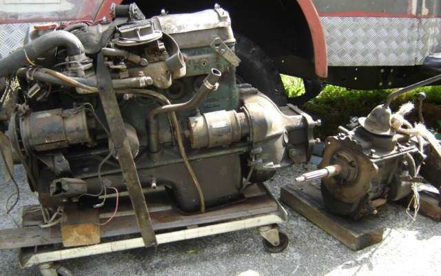 I never studied French, but Google Translate suggests the seller is looking for a duplicate engine, and that this one is missing some parts that are still available. If the engine is original, kaiserwillys.com suggests it would be the 230 cid (3.8L) Tornado inline six-cylinder engine. The listing claims this unit is good for 100 HP.