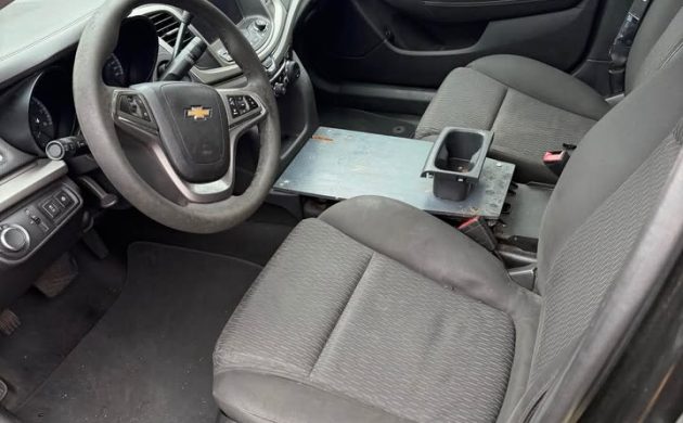 Bare-bones and spartan inside, there’s no denying that if you buy an ex-police vehicle, you’re going to live with minimal features. This is one of the main drawbacks to buying a Dodge Charger or Caprice PPV like this one: unless it was used sparingly by a detective already with one foot out the door towards retirement, these cars were ridden hard and with no convenience or luxury features to distract you from how badly they were beaten daily, all you have to stare are scratched surfaces and deflated seats. The PPV, of course, has power features and a modern cockpit, but it’s a stripper equipment-wise. I’m assuming that table is where a laptop-style computer was previously mounted.