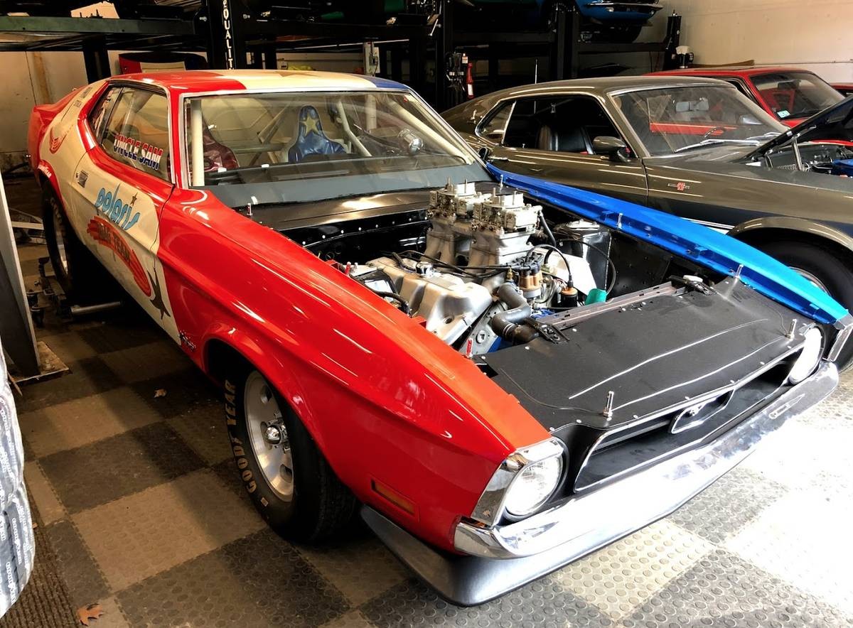 Eventually, the team moved onto a new car, this time a 1971 fastback – the very car you see here. Extensive work was done to fortify the chassis by the best funny car builders of the era, and a highly over-built Boss 429 engine paired to a B&M C6 transmission was slotted under the hood. The patriotic design continued inside the cabin, and you have to give the team some serious style points – they had the looks down, including the awesome transporter pictured below. The Mustang took home some hardware over the years, but the team’s future literally came to a dead stop when the wealthy heir’s parents pulled the plug on future funding.