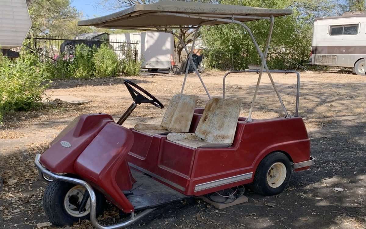 No headlight, well, not many golf outings after dark. Believe it or not, these had a “2nd life” as a farm maintenance pre-dating most JD Gator purchases. JD knew the market was wide open for a more rough going farm or maintenance vehicle. My neighbor had a dairy farm, got injured, and the family got him a golf cart like this to get around. They bought a Gator soon after.