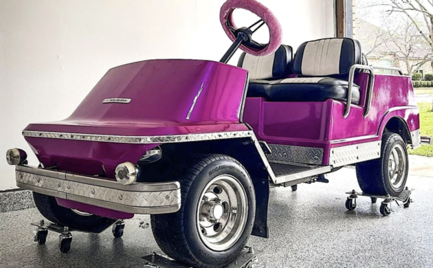 This cart is missing its headlamp, but the badging, bumpers, tiny bucket seats, and frame for the surrey top are intact. The fiberglass body doesn’t look bad either. If this one doesn’t strike your fancy, a surprising number of other original examples in various phases of disrepair are available here at golf cart sellers. Prices are as low as $100 for parts/project carts, while spiffy runners can breach $2000.