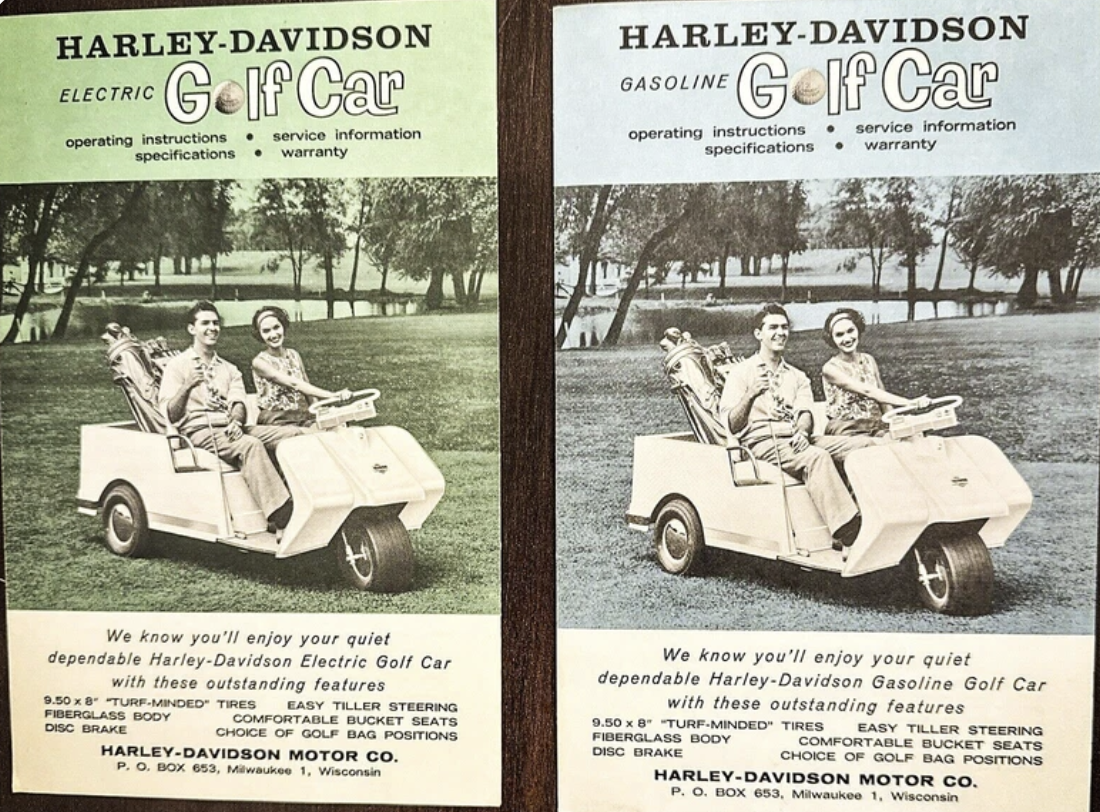 In its original guise, top speeds were between 15 and 20 mph. Inevitably, some owners have souped up their golf carts both cosmetically and in the power department, though I’m not sure I’d want to travel much faster than the factory intended. Harley’s history took an unfortunate turn in 1969 when the company was purchased by American Machine and Foundry. AMF maintained production of Harley golf carts until it sold that division to Columbia Par Car in 1982. In 1996, ParCar shifted to a four-cycle Briggs & Stratton engine, a moment that could be considered the end of Harley’s DNA in the golf cart business.
