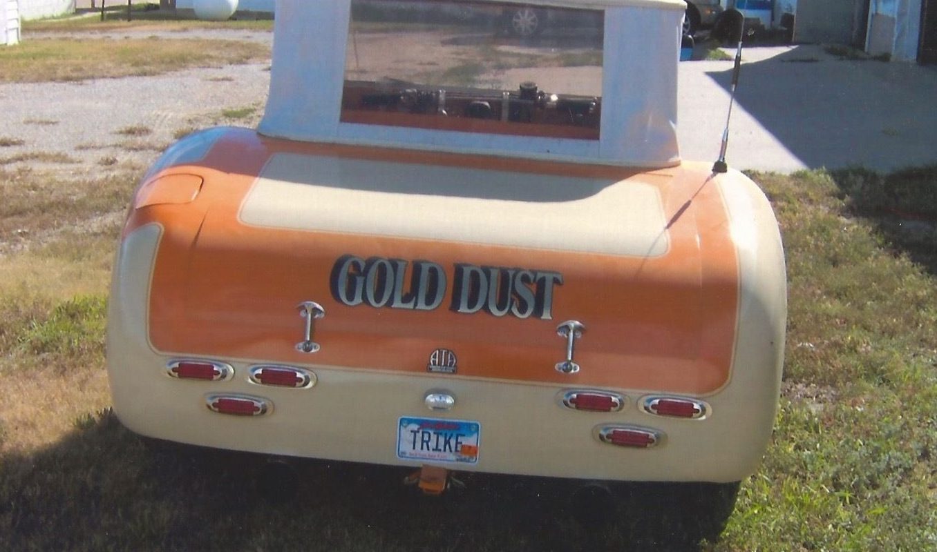 Out back, this “Gold Dust” trike gets a real trunk so you can actually take real luggage with you, a feat not possible on a conventional motorcycle unless you are an extremely light packer. Out back, this trike also features a Datsun 510 rear axle and a Ford 302 C4 automatic transmission. The exhaust and the muffler are also new, so some money has been thrown at this thing beyond simply maintaining it as the oddball it is.