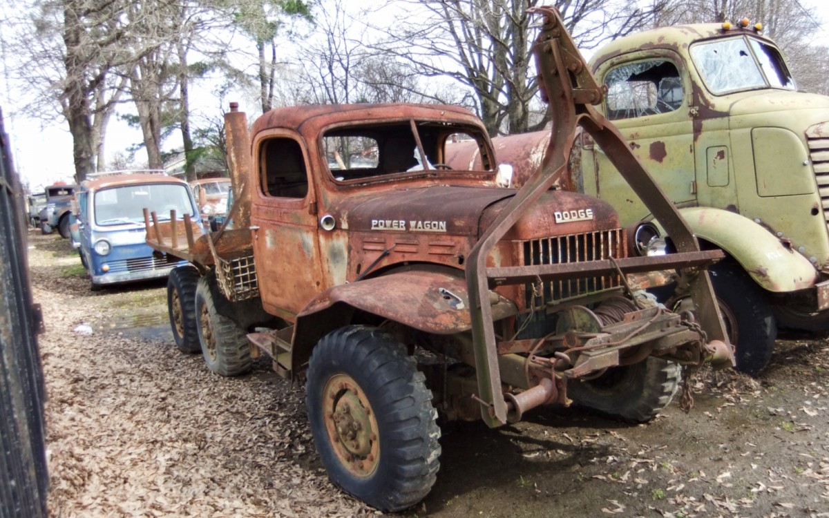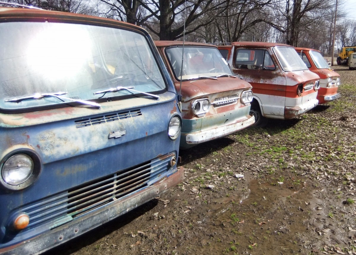 From Lilredex – On our way home from Memphis, we spotted a yard full of old vehicles near Union City, across from an SC Housing and a TSC store. There was nobody around, so we took pictures through the fence. There was lots of construction equipment also, that was not photographed. A modified Dodge Power Wagon, Corvairs, and a lot more!