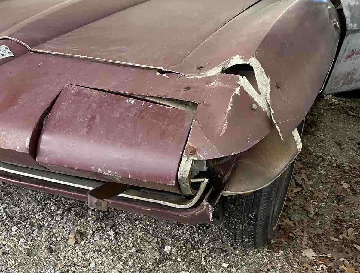Let’s face something else—the Corvette is rough. It has been off the road since the 1980s, presumably because of the very visible front-end accident damage that heavily messed up the driver’s side and shattered the fiberglass. It’s not that bad, though. Cars were more disposable in the ‘80s—today we wouldn’t even think of abandoning a car like this.
