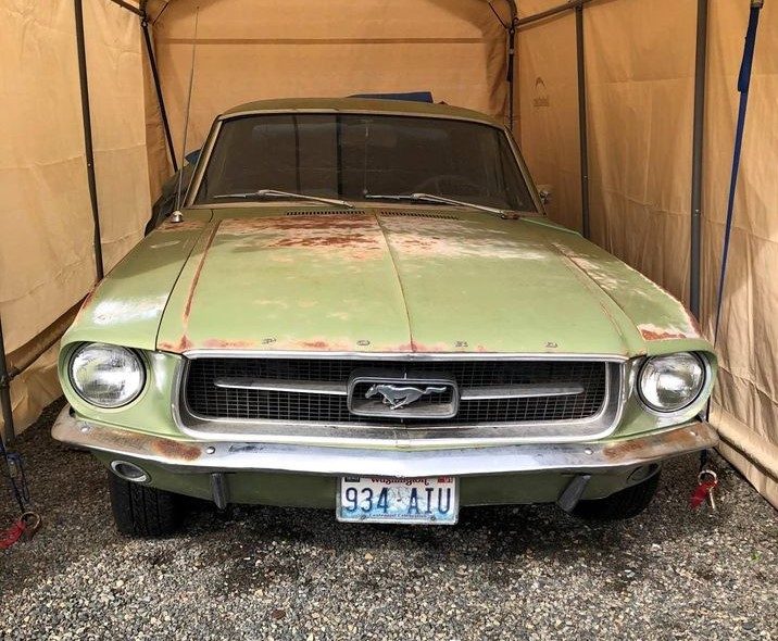 You have to love sellers that lack pictures and an actual detailed description of the vehicle. They went to trouble to pull off the tarp/cover and have only 3 pictures of basically the front of the Mustang! This one has lots of sun damage from SW Washington State? GLWTS.