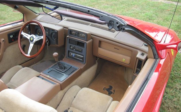 The interior is pure Fiero, but to the seller’s credit, the cabin is in outstanding condition. The Fiero interior was a fairly attractive design, in my humble opinion, with nicely bolstered bucket seats and a generous center console that split the cabin down the middle. Sure, it’s no Ferrari, but it at least felt sporty. The Ferrari floor mats and subtle badges on the glovebox are a nice touch, and at least this tribute car didn’t go over the top with prancing horse logos. The Nardi steering wheel is always a classy look, and thank heavens this Fiero comes with a 5-speed manual.