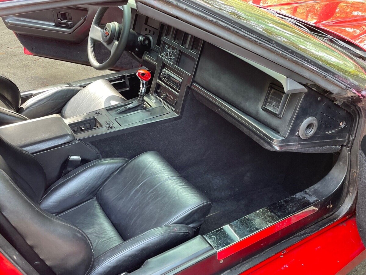 The interior, sadly, isn’t as exotic as the outside, resembling a bone-stock C4 Corvette. The heavily weathered rubber stripping along the door frame tells you that there’s some work to be done beneath that eye-catching exterior and that the cabin will forever be a let-down compared to the rest of the car. The C4 interior is attractive on its own, but it somehow looks too plain to compete with that faux Ferrari bodywork. This is, happily, one of the rare manual transmissions C4, equipped with the unique 4+3 gearbox, which should at least make the driving experience feel like it lives up to the sporting intentions of the bodywork.