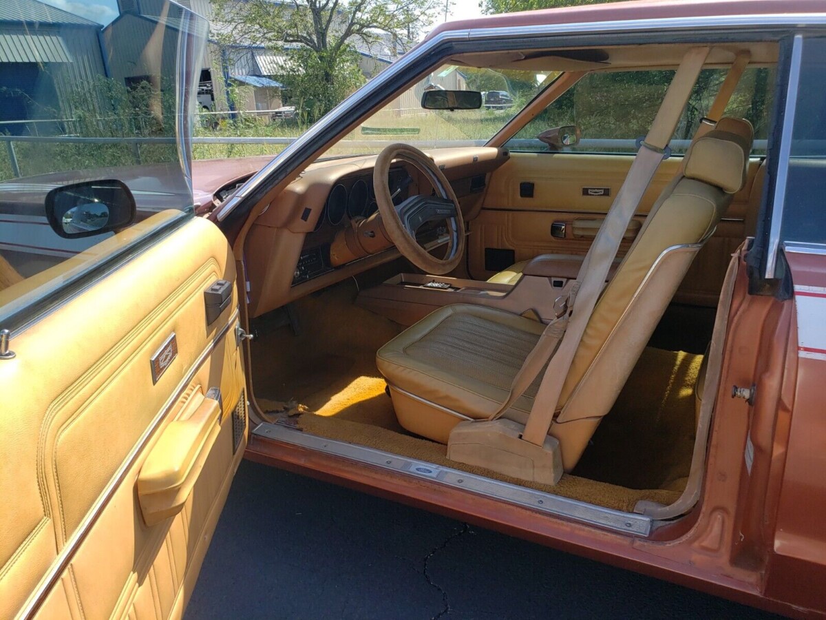 This thing is just so cool. The decals running down the side and the back make it look way sportier than it has any right to be, and the faded bronze / orange paint is distinctively different. The period-correct wheels and white-letter tires add to the aggressive appearance, which isn’t a term we typically associate with these big-body personal luxury coupes. The Ford was bought new in Texas and has seemingly stayed there ever since, so it remains quite solid throughout.