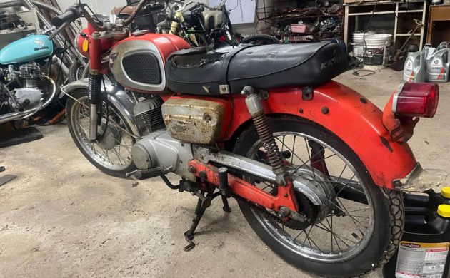 The engine is Kawasaki’s 169-cc two-stroke, rotary-valve single-cylinder with 18 horsepower and 14 lb-ft of torque, and it has Kawasaki’s SuperLube oil-injection system. Power is sent through a four-speed manual transmission and chain to the rear wheel, and it has a belt and suspenders (kick start and electric start). The seller says it doesn’t run but has good compression. Hagerty is at $1,700 for a #4 fair-condition example and $3,700 for a #2 excellent bike, so there isn’t much room, as far as restoration costs go, to stay under that number. Would any of you ride a single-cylinder Kawasaki on Texas freeways?