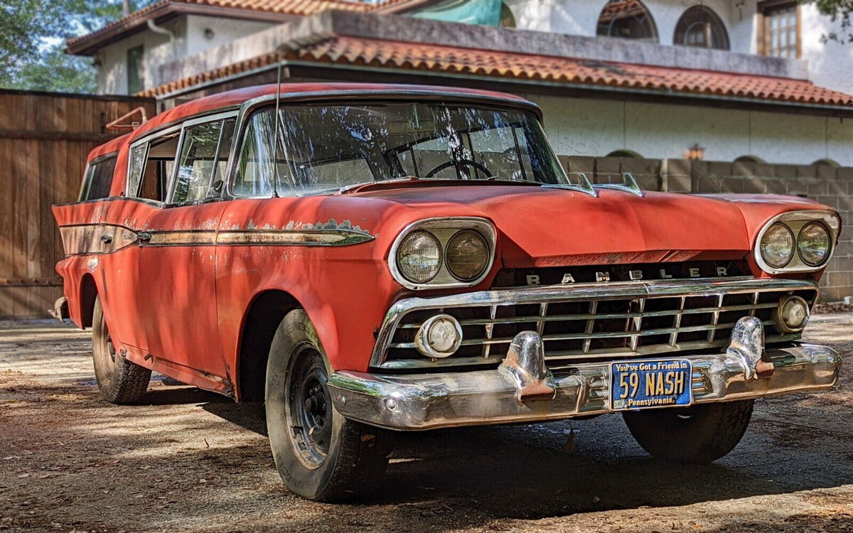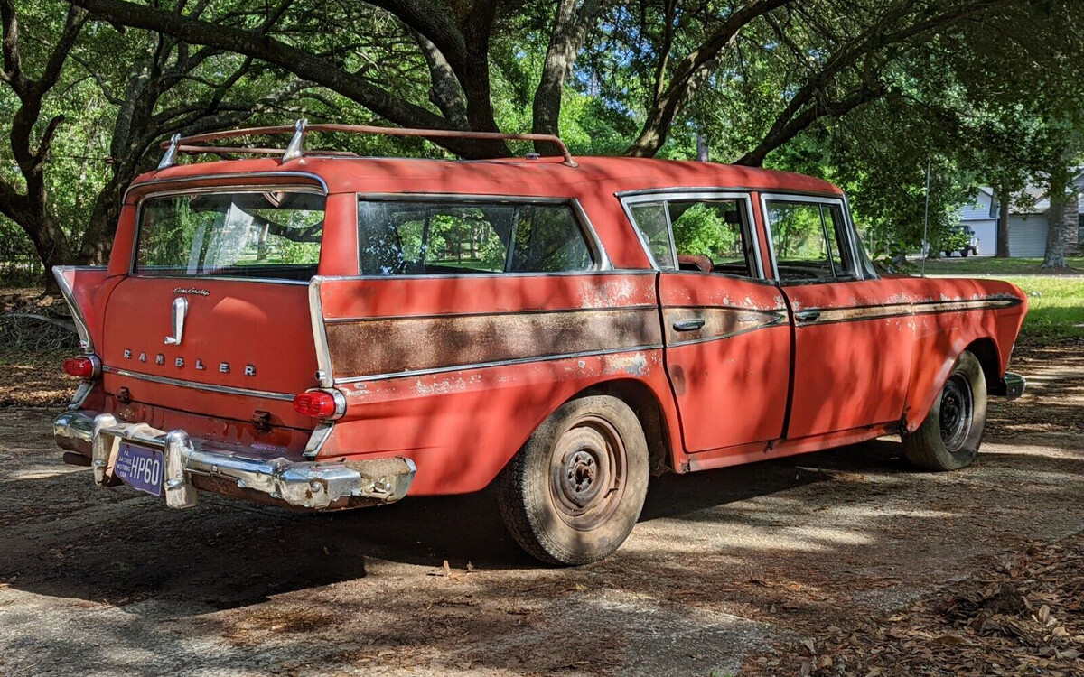 The intact tail lights PLUS intact backup lights are nearly worth what this ’58 Rambler Cross Country sold for on eBay!