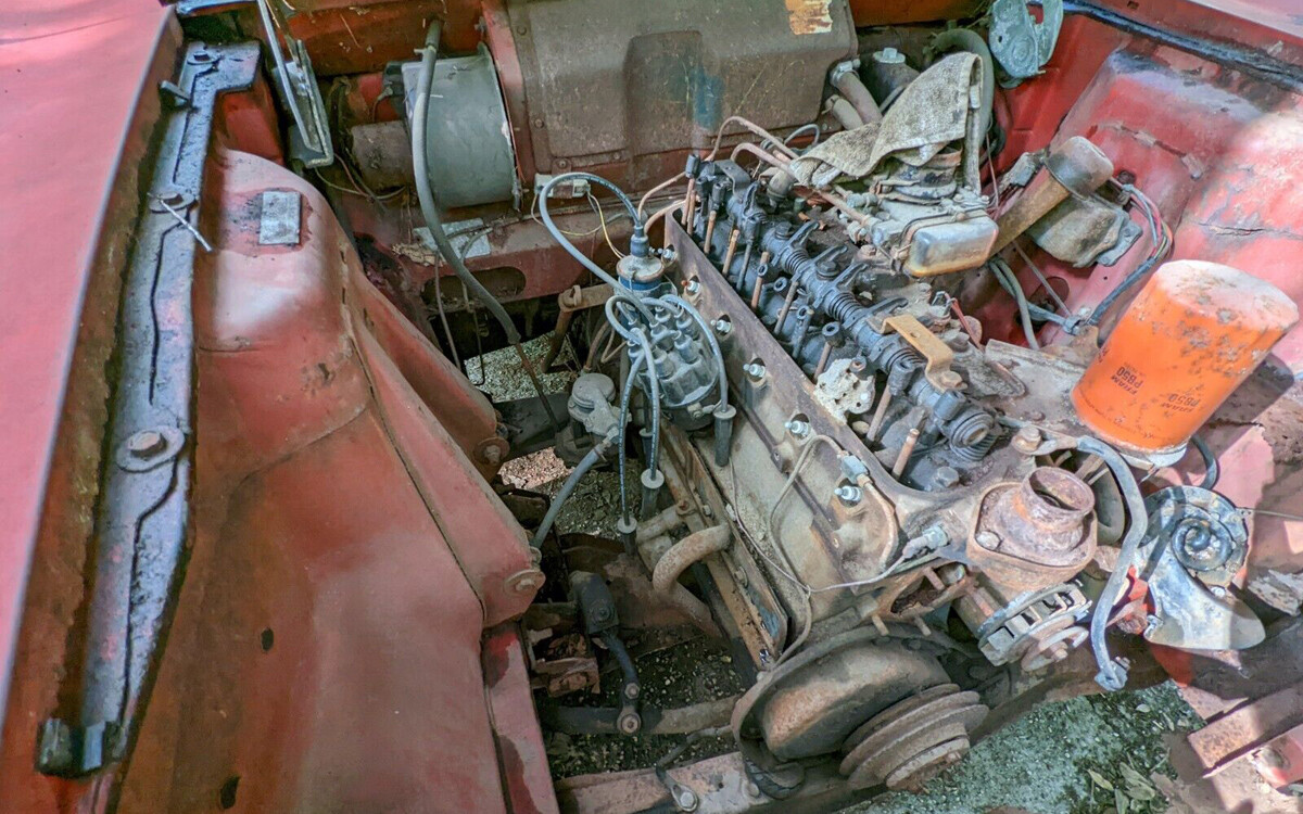 The engine in a Rambler Six is – drumroll, please – a six-cylinder! This one should be an AMC Typhoon 196-cu.in. OHV with 127 horsepower and 180 lb-ft of torque, or it did have. This one is stuck, unfortunately, but hopefully it can be saved somehow. This is a big project, do any of you have it in your soul to restore a car like this Rambler Six Cross Country?