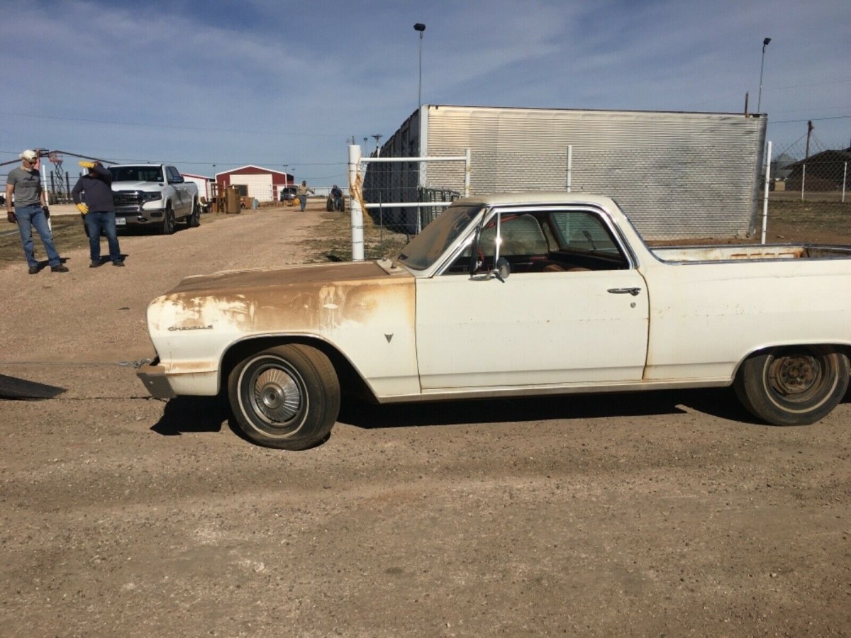 This is a 1965 model, possibly sold new in late 1964. There was no El Camino for model year 1964; the model had been discontinued as of model year 1960 and was reintroduced for model year 1965.