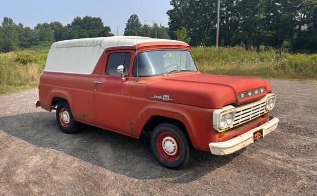 This 1959 Ford F-100 Standard Panel appears to be what Ford referred to as Vermillion for its red color in this year. The white paint scheme on top is pretty unique; most of them would have been white above the body line, matching up with the bottom of the hood. The seller has this very cool truck posted here on craigslist in far northern Vermont, Colchester to be exact. They’re asking $24,900, here is the original listing, and thanks to Mitchell G. for the tip!