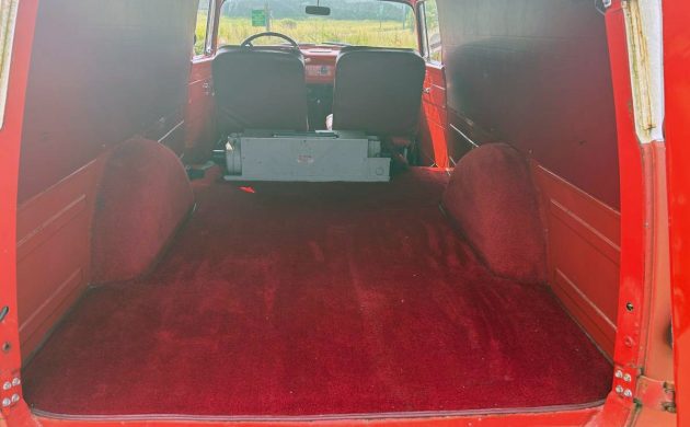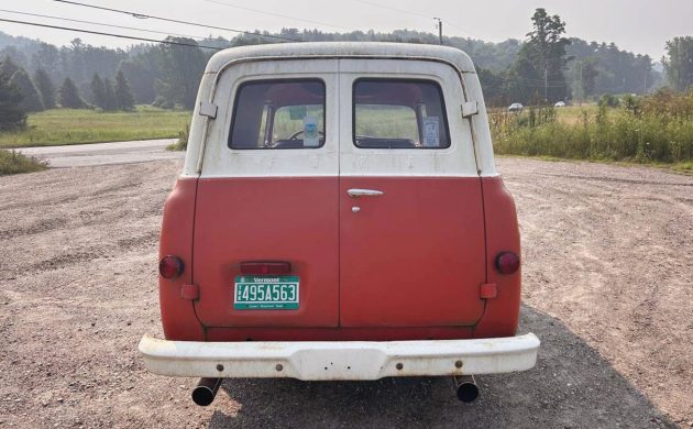 The interior has more of a custom flair (also flare on the floor mats), but custom as in not factory, not Custom as in model. It looks good inside, other than that ear-hair-like wire snaking out from under the dash. Ford made just under 8,000 Standard Panels in 1959 (just under 1,000 Custom Panels were made), and this one has a three-speed manual with a column shifter. A Cruise-O-Matic automatic was also available – although only on the F-250 and F-350 versions.