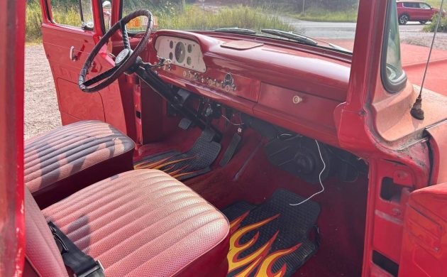 The seller talks about the engine, but for the love of Mike/Pete, they don’t bother to pop the hood and show it to us! It should be a 292-cu.in. OHV V8 with 186 horsepower and 289 lb-ft of torque. They say this truck has power steering (!) and aftermarket air-conditioning (!!), so that’s good news. It has new tires and a new battery, and is said to run and drive great. I would probably keep this one as it is and just maintain it and drive it. What would you do with this Standard Panel?