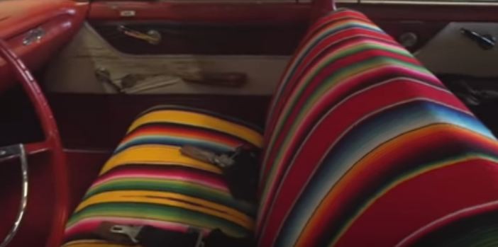 The interior is a mix of old and new, and every electrical item and accessory inside the car works as it should. There is no headliner, but there is a neat layer of Dynamat that I actually don’t mind. The original seat was looking a bit ragged, so it was given some new stuffing, and then bound up with tape. An upholsterer created a new cover from a Mexican blanket, and I think that it looks quite nice.