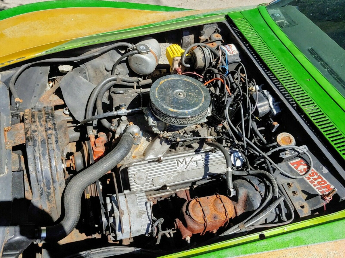 Under the hood rests the usual 350 cubic inch small block Chevrolet V-8. The plate on the console tells us that this is a 300 hp engine, with 380 lbs. ft. of torque and an 10.25:1 compression ratio. The engine is backed up with a four speed manual transmission. According to the seller, the engine has been brought back to running condition. The fuel lines, gas tank, and braking system have been gone through as well. The car runs, drives, and stops. Surprisingly, it looks like the engine was never removed from this car. Getting it back to factory condition wouldn’t be too hard if you were thinking restoration.