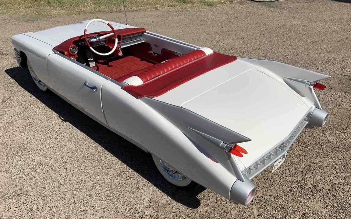 If you decide to give up your human golf caddy, why not replace them with this amazing Caddy? From (where else?) Texas, Lubbock to be exact, comes this amazing electric 1/3 scale 1959 Cadillac in running, driving form. This unique creation began life as an amusement park Turnpike car that was later electrified with a 48-volt golf cart powertrain. Like any high-rolling Cadillac, this one was stretched (three inches) for additional comfort. An opening bid of $12,000 or more here on eBay will get the action started. Or send your competition into the rough by simply clicking Buy It Now for $19,000. Special touches like genuine cut-down ’59 Caddy hub caps assure you’ll have the sickest golf-cart-like vehicle around.