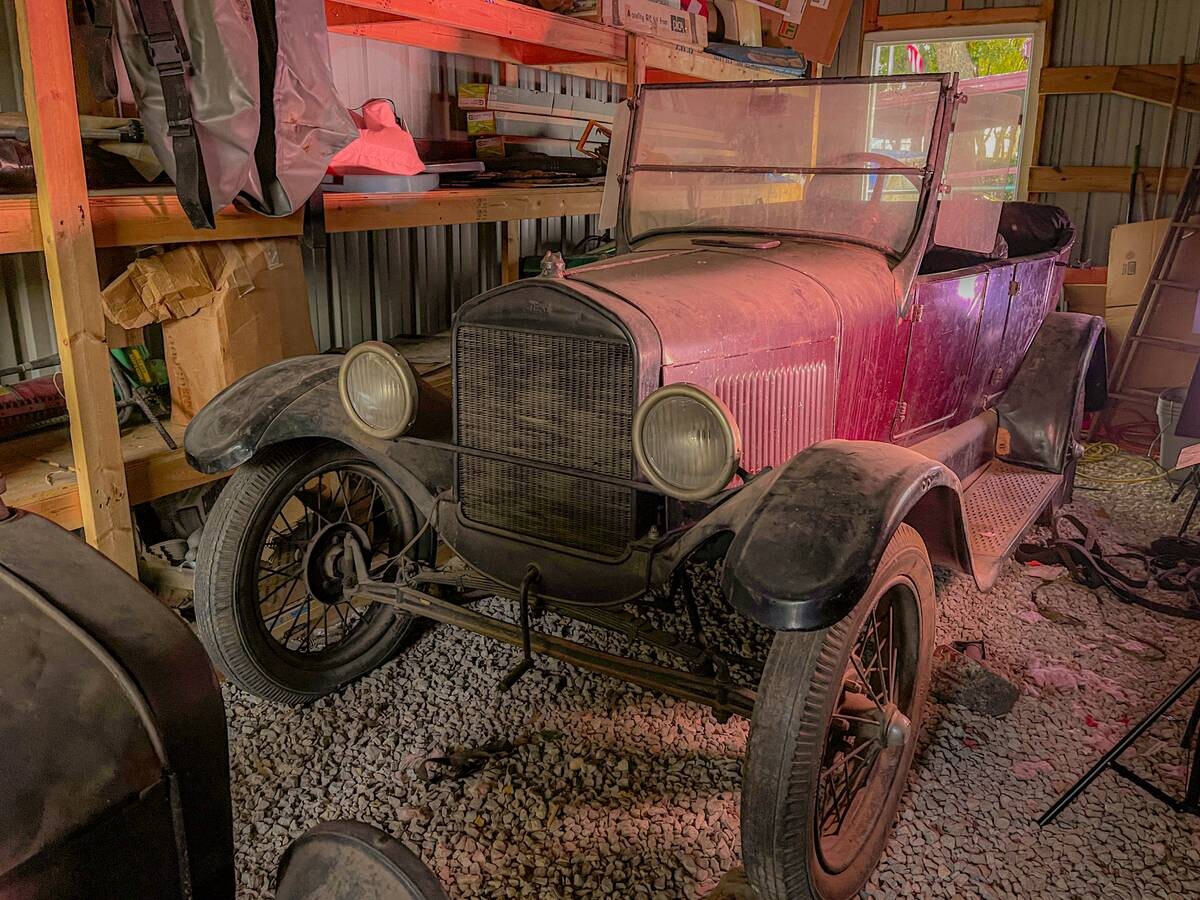 What the Model T wasn’t was fast or terribly comfortable that its successor – the Model A – would rectify just prior to the start of the Great Depression. The last Model T was built in May 1927. The seller has managed to squirrel away two of these breakthroughs in American transportation and they were built 18 years apart. We assume the 1908 edition photographed is the one that looks like a rolling chassis. The other, a 1926 version, looks more complete.