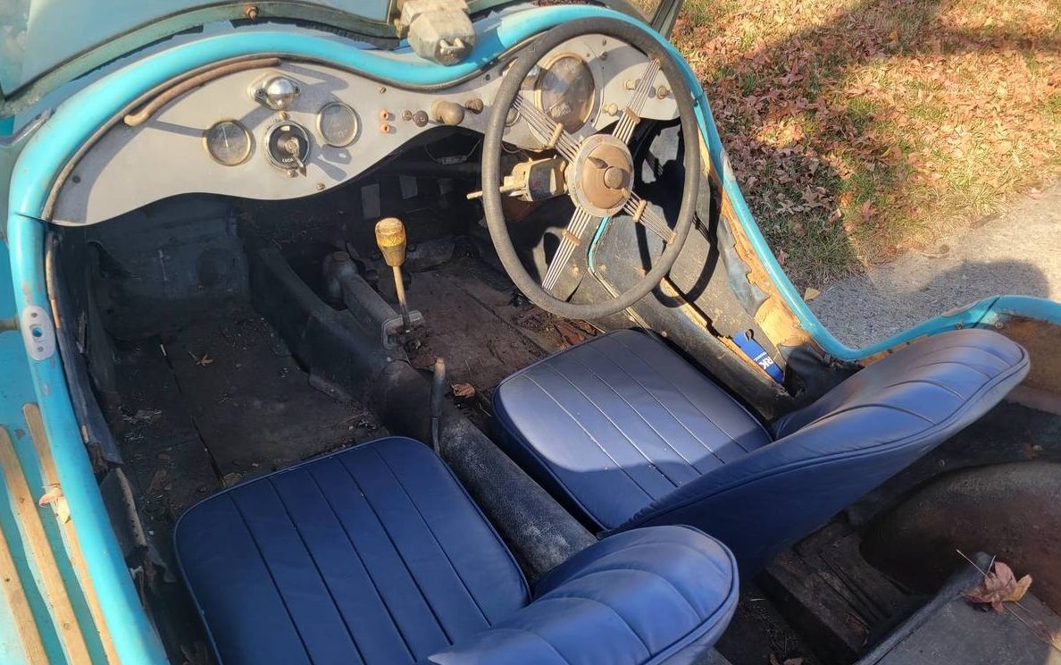 As for the right-hand drive interior, the seats clearly look to have been reupholstered but the remainder has a typical 1935 British sports car austere look about itself. The footwells show as being “unsettled” and that gear shift appears to have an exposed lever mechanism – that’s a bit different. Of note, it appears that turn signals have been added if I have correctly identified the mechanism attached to the left side of the steering column.