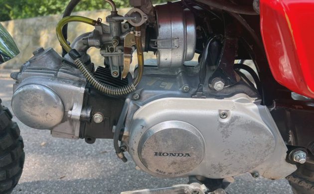 The engine is Honda’s 49-cc four-stroke OHC single with just under 3 hp. It’s backed by a three-speed transmission with a semi-automatic clutch, and this looks like a really nice example with some normal wear on the engine cases and minor surface rust on the frame, but nothing that looks alarming at all. They say it starts and rides with no issues, there are no leaks, and $2,500 seems reasonable in today’s market. Have any of you owned a Honda 50?