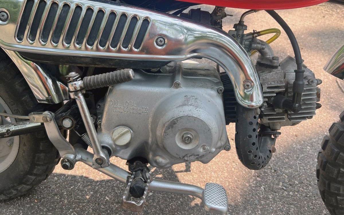 Mini bikes were all the rage in the 1960s, with countless companies jumping into the market. They were typically defined as a small motorcycle with a rigid loop frame, sometimes with shocks on the front or both front and rear, and an engine with a pull-start, similar to your lawnmower or snowblower engine. Honda’s Z50 “monkey bike” was different in having a kick-start, although early models had a rigid frame without rear shocks.