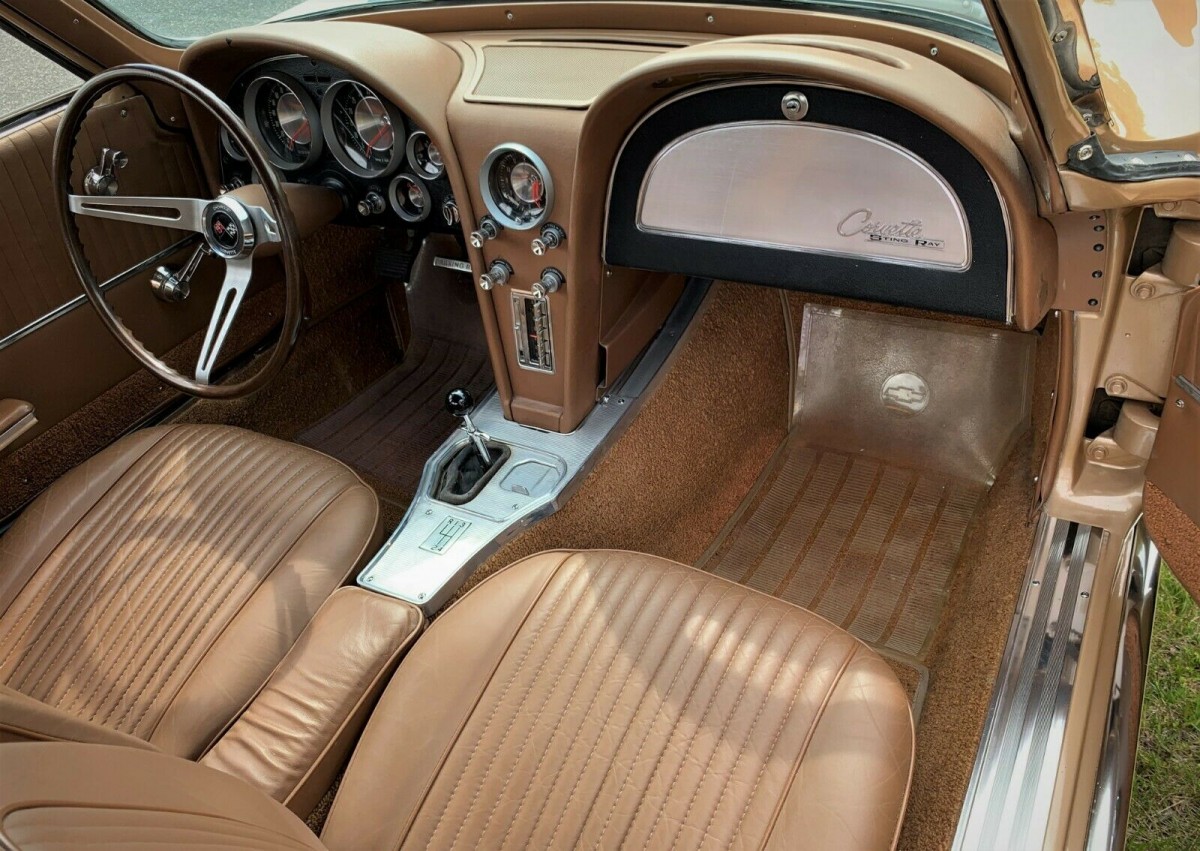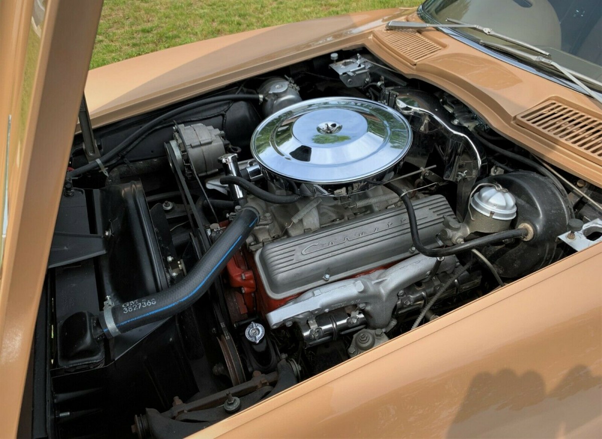 The car has recently completed an extensive restoration. The exterior is painted saddle tan and the interior is a matching saddle color. The car is propelled by a 340 horsepower 327 cubic inch V8 engine backed by a 4-speed manual transmission. This solid lifter engine is said to be numbers matching and runs great. The rear gears are a potent 4:11 ratio which should make this car fun to drive around town. The car also has positraction, power steering, and power brakes.