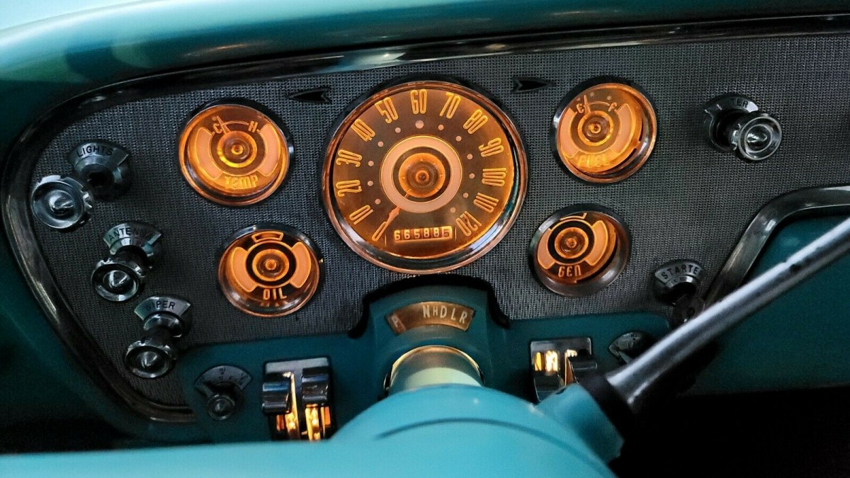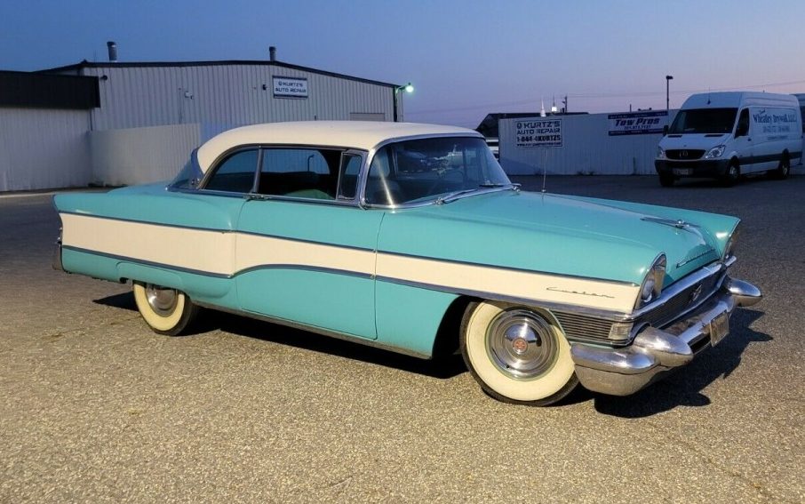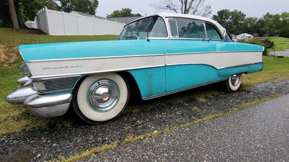 The two-tone turquoise-and-white paint job, probably an older repaint, is looking very good. There’s only one ambiguous, not-on-a-lift undercarriage shot, but the frame, trunk, and floors are said to be solid. There’s lots of chrome, and it’s all there and decent. The 275-horsepower, 352-cubic-inch Packard V8 “runs great and has plenty of power,” and the automatic is functioning properly. The car has dual exhaust with glasspack mufflers, and all is well there too. The handsome wide whitewall tires still have 90 percent tread, though it’s unclear how old they are.