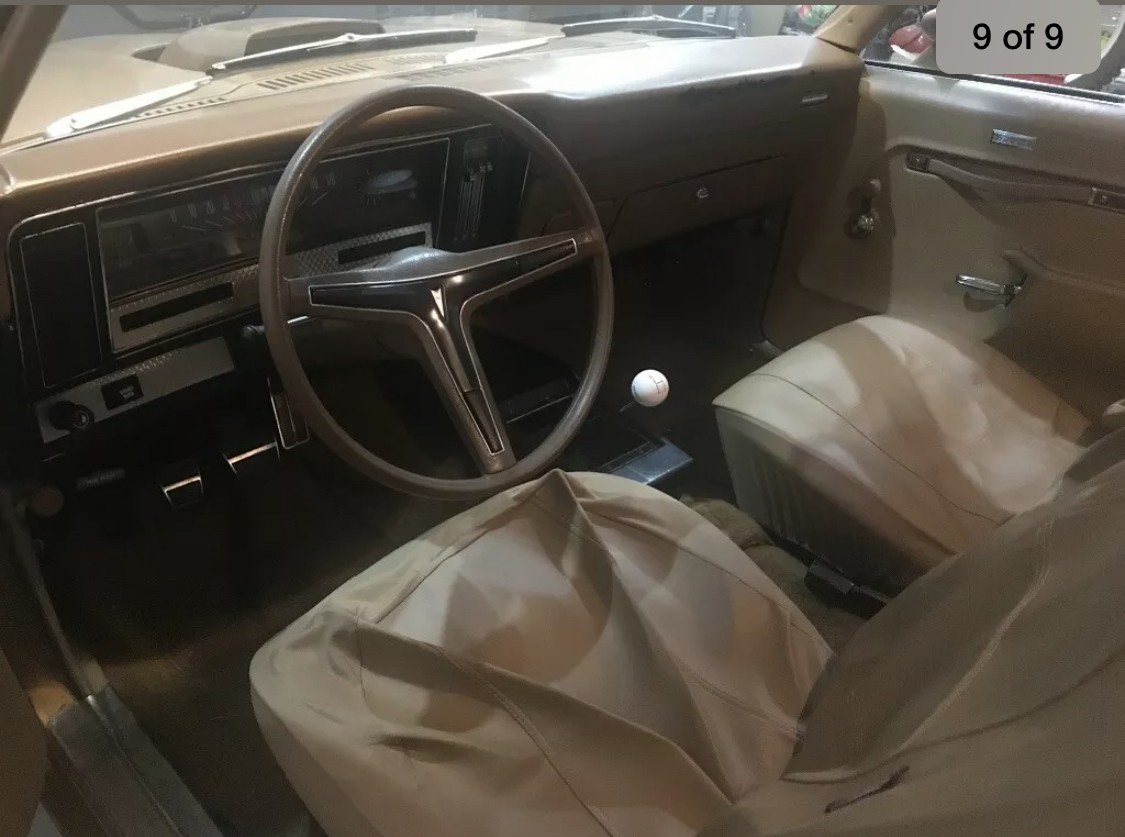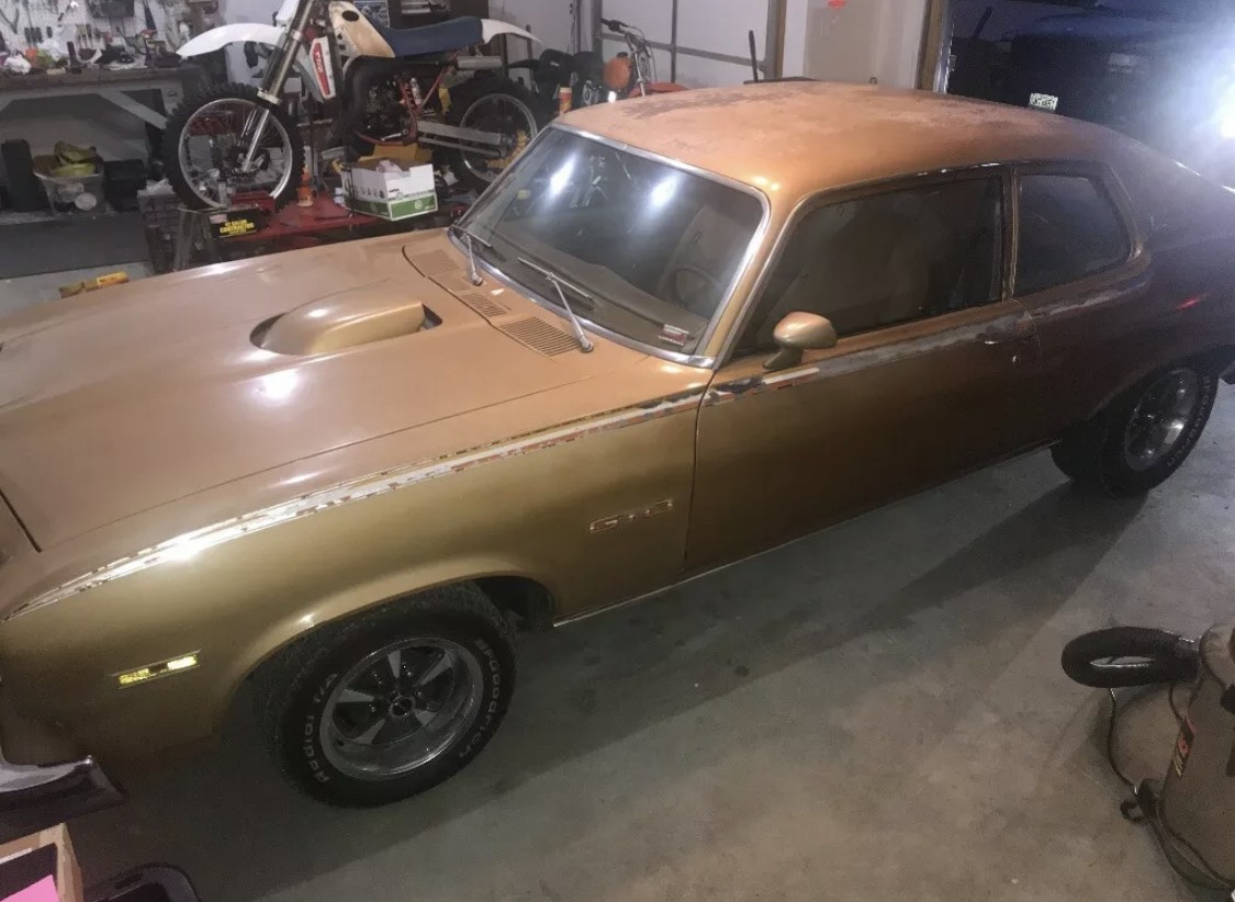 I liked the body design on these when they came out but also because it was lighter than the ’72 GTO. ( and possibly any of the GTOs. Also, since it is all set up for a Pontiac V8, all the V8 Pontiacs bolt right in. So if you find one of these in good body condition, grab it. Then start searching for a very interesting engine choice. Pontiac, that is from 1965 on up. 421s, 428s, 400s, 455s could still look stock and be a blast to drive. And with all the available Nova suspension pieces available. You can modify for drag racing, track days or just a canyon carver. This one would be priced right if the condition was there to support it. ( not enough photos to even consider it, and the lack of presentation indicates a seller that is not serious about selling. I never saw one of these in this color.