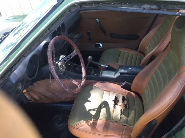 The interior is typical of a project car, its rough and needs work, but mostly complete. I don’t know if the seat color is factory but I like the look of tan with a green center. This car is in need of a full restoration, I’m not sure that would be a good investment but if you do the work yourself it might make sense. The car looks like it may not be too far gone to make into a functioning project car you can drive. Let’s hope there is a bright future for this one.