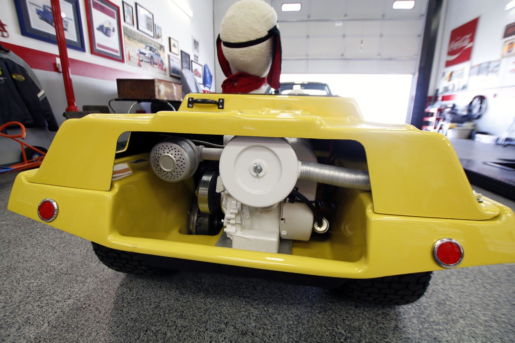 With enough information in hand, Robbie started taking the Snoopy car apart one bolt, one nut at a time. I didn’t realize how interested he was in the project until one very cold winter day I found him on the side of the garage working away at his dismantling project. Once everything was apart it was time to refurbish and replace parts. Chrome plating, locating NOS parts, bodywork, painting, wiring all needed to be done. Decals were sourced from a specialist in Pennsylvania who reproduced them perfectly.
