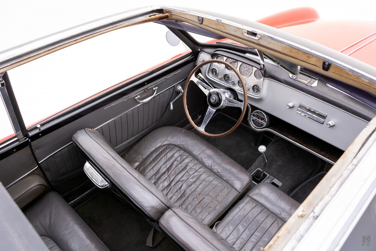 The Bill Frick Special GT Coupe by Vignale is unique, and was sold for $9,000—an enormous pile at the time—to the heir of a Michigan lumber fortune. He specified a full fabric sunroof and a Pont-a-Mousson four-speed manual transmission. Borrani wire wheels were later added.