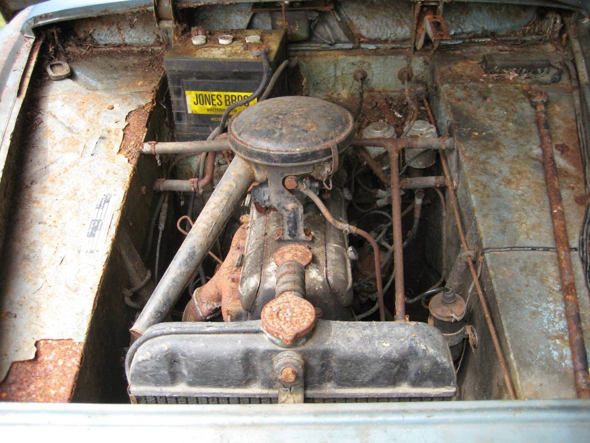 The interior is the best part of the car, with the seats being nearly-perfect after 63 years. The car will come with a spare front seat from that other car to help the buyer through the restoration process. While the dashboard and steering wheel appear good, the seller will throw in spares from the other Isabella. The original engine and heads are present, but the motor is seized.