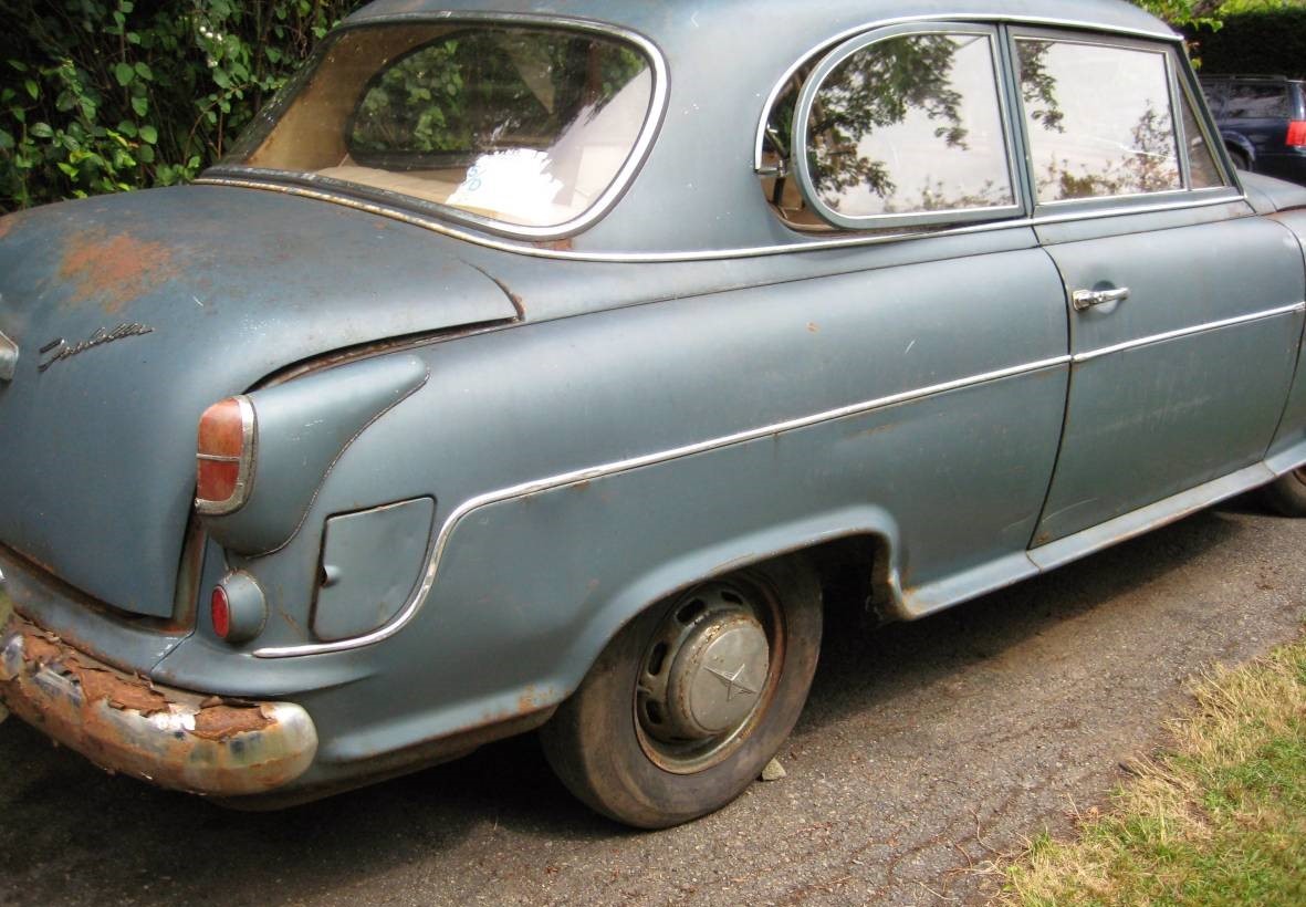 Mine was exactly the same color, but a later Isabella TS 5 seater. Dad knew I wanted a car and this is what I got when the widow paid Dad $35 to haul it away. He handed back the $35 when she gave him the shop manual. Lots of rust and the engine was blown from over-revving. We found a running junk yard engine and did the swap. The TS had a two throat downdraft Solex instead of the base Isabella which added horsepower. The intake was unusual as it was truly downdraft from the carb straight down through the head into the combustion chamber. Good torque, nice four on the column and decent brakes once rebuilt. It was only a 6 volt system so winter starts were tough until I learned to manually retart the distributor on full choke and then reset the timing at the mark once it was running. Carl Borgward was really a truck manufacturer and it showed in the car’s construction as it was overbuilt. They are not a pretty car, mine was nicknamed “The Warthog”. Isabella was Carl Borgward’s wife’s name.