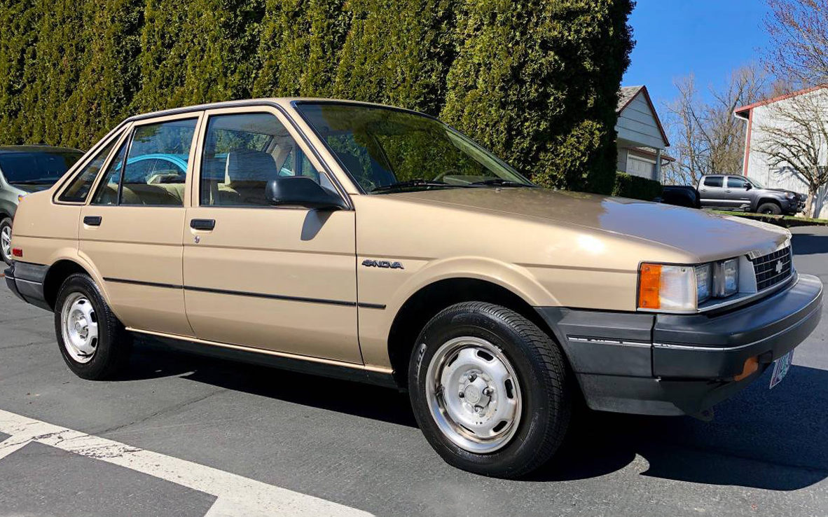 For any of you who are still with us here, hey, no sneaking out, Howard… This is seriously not a car that most humans would be passionate about at all unless they had one or their parents had one back in the Reagan era. But it’s a blast from the mid-late-1980s and most of us haven’t seen one in decades. Some of us never wanted to see another one, maybe that’s more like it. They were made from 1985 to 1988, which was the last year that Chevy used the Nova name on a car. This example is maybe as close to new as possible, inside, outside, and underneath.