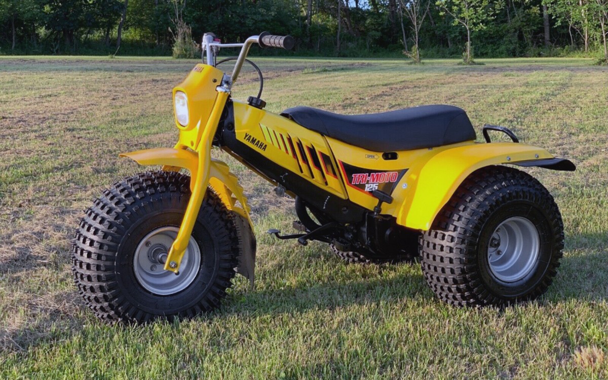 Most of us know of the famous Honda ATC90, arguably the one that started it all in 1970, as in the three-wheeler craze. This is the other one, or one of the other ones, as many motorcycle companies made three-wheelers. This 1985 Yamaha YT125 Tri-Moto can be found listed here on eBay in Athens, Pennsylvania, and it didn’t take long for someone to up my lame $900 initial bid, but I’ve always wanted one of these, so I’ll be watching it. There is a $2,000 buy-it-now price if it gets hairy towards the end.
