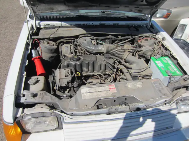 Quite the oddity. Adding to its distinction is its front end from that of an ’84 or ’85 Topaz. A restyled front with flush headlamp lenses and different grill was in place for ’86 and up.