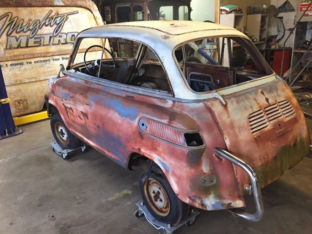 The BMW 600 replaced the original Isetta and was designed to be a full 4-seater, as opposed to the Isetta, which was only designed to seat two people, although it was possible to fit three people in relative discomfort. The 600 was enlarged in every dimension, but it still remained within the realm of the micro car. This little BMW is largely free of significant rust, but it will probably be necessary to have the vehicle media-blasted so that you have a clean base to work from. The biggest issue facing the new owner will be glass. There isn’t a single piece in the car, so replacement items will need to be sourced. While this may be difficult, it actually isn’t impossible. In researching this story I was able to locate at least ten companies across the USA who have the glass in stock, and can also supply all of the seals and other window components.