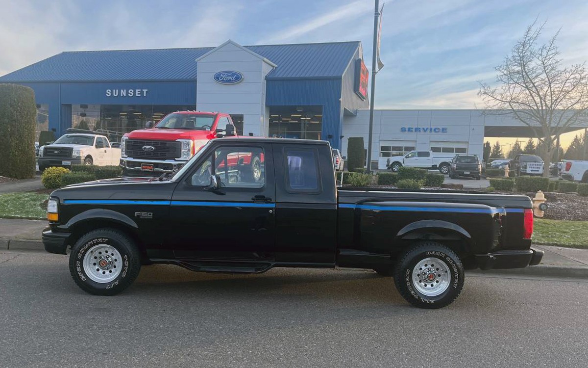 Very nice survivor! I came very close to buying one new in 92, when Ford offered it in a Reg Cab, but the dealer I was working with couldn’t find one, especially with a 351/5speed manual. I ended up buying a 93 Chevy C1500, with the Silverado Package Sport 350 Chrome. In met silver and grey interior with captains high back buckets and console. With a 350/TBI, 5 speed manual running 3:73, G80 rear. That had all the chrome plus slotted wheels just like the 454SS, 15×10”, with handling package.