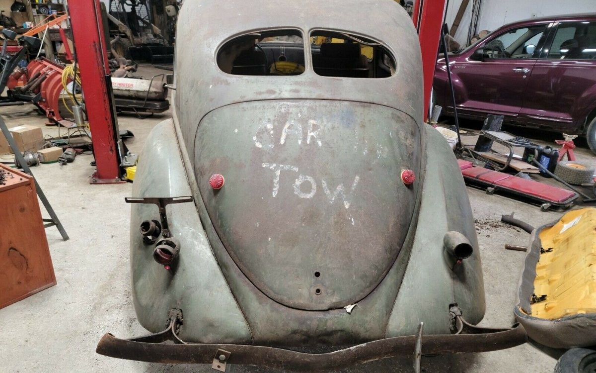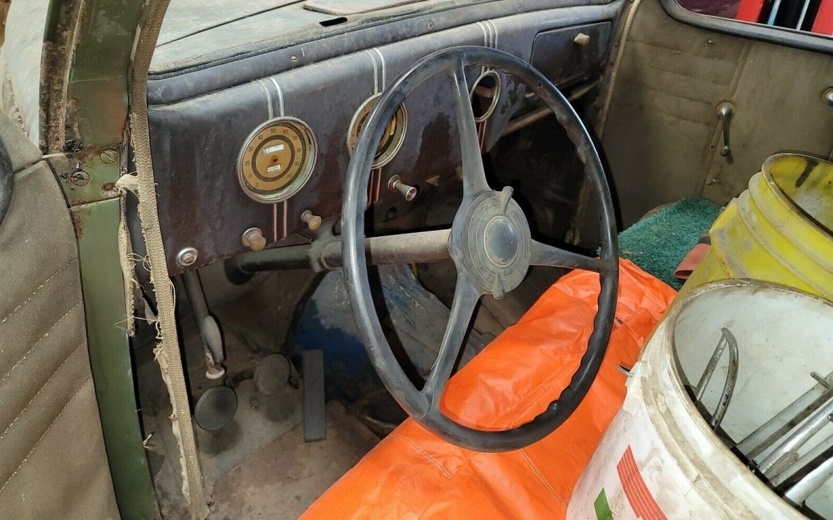 This would have been a very cool find if it were not for the skid plates welded to the bottom. Were they going to use it as a rock climber? I would start by trying to find a good rolling chassis to put underneath it. Then go from there with straightening, repairing and painting the body followed by juice disc brakes and nes wiring. So many options available it would be difficult to decide where to go from there. What a beautiful car it will be when done. How about that steel speer pointing directly at the drivers chest. That reminds me of my dads 39 Dodge seven passenger sedan he drove from 1940 to 1953.