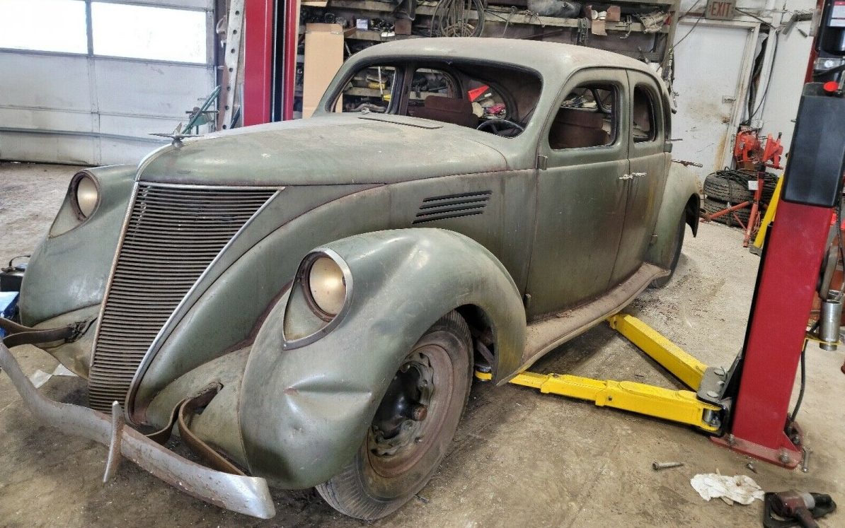 Modern engine swaps into older cars have been occurring for decades. Regardless of marque, the ubiquitous Chevrolet small-block seems to worm its way into everything. I get why, but brand purity would be preferred as using a Ford Windsor in a deuce coupe, etc. And that logic should flow through to something like this ’37 Zephyr (the seller says that he thinks it’s a ’37 but he’s not sure – no title; I think it is too but let me know if you think otherwise). Anyway, why start small, when you can go straight to the top, right? And that’s exactly what some creative soul has done; why shove in a puny 302 or a 347 stroker when you can trip the light fantastic with a 429 CI “385” series V8 behemoth? My initial thought was, “How do you get it to fit?” A 385 series motor is physically huge. I used to work with a quarry engineer who was an inveterate mechanical tinkerer and he “modified” a farming tractor with a 460 V8, the same architecture as the 429, and the contraption looked surreal with this Brobdingnagian power plant appended to it. How’s this hot rod Lincoln run? Well, no late-night runs out of San Pedro for this sedan, but it ought to go like a scalded dog. Unfortunately, this Zephyr hasn’t taken flight in a while. The drive train looks like an automatic transmission (C6?) connected to a Ford 9″ differential but there is no elaboration on that front.
