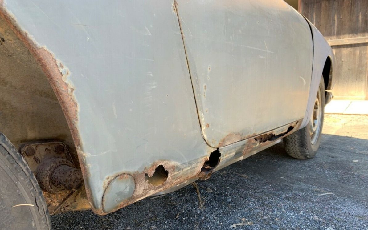 I’ll apologize upfront for the quality of the images, they’re all off-kilter and not very helpful in trying to market such a collectible automobile. A 911 from this era is, in my narrow estimation, among the purest form. I think it’s the simplicity and completely clean styling that makes it an attractive acquisition. And they certainly have a strong following. The seller suggests, “1966 911 slate gray red interior very rare and one of the best color combinations…” Some stats to back up the rarity claim would be appreciated – maybe it is and maybe it isn’t. I suppose a lot depends upon whether a potential buyer likes it as is. That said, the slate gray looks more like gray primer and it’s hard to imagine that the needed restoration wouldn’t involve a repaint. It would be unlikely that an acquirer would leave this Porsche as is, but they’re only original once – and it’s that originality that secures the rarity – sounds like a Catch-22. Rare or not, there’s some pretty notable rot-through going on here, a phenomenon that, unfortunately, is not rare with this vintage Porsche.