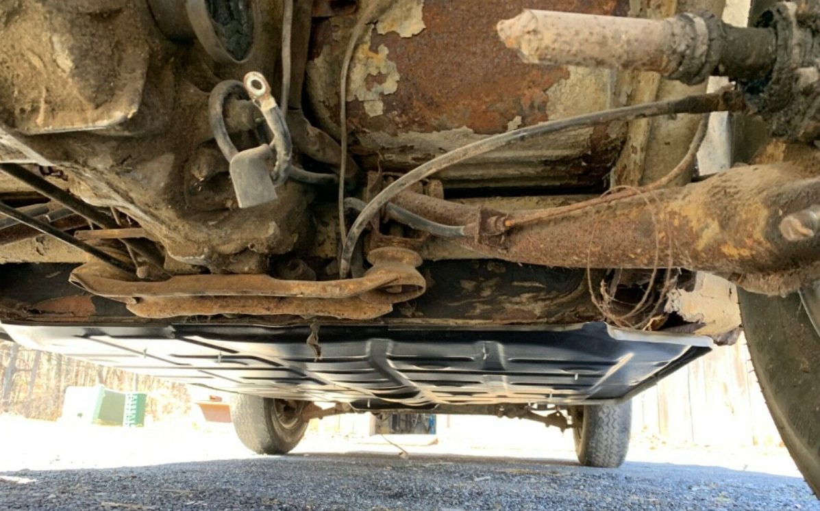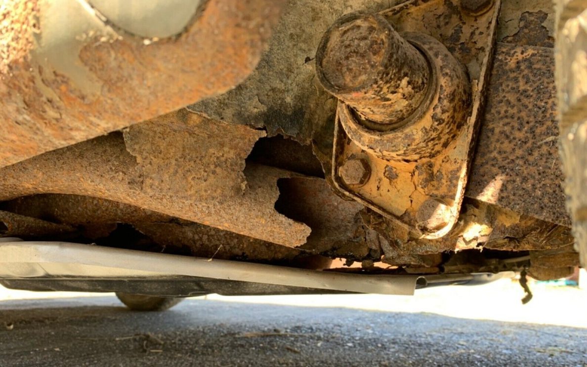 And that rot extends to the underside, note the damage in the above image. I can’t tell with certainty but it appears that there is some structural failure occurring here. Further notes include, “The floor is screwed in for shipping purposes. It’s a project car that needs major rust repair front pans floors inner-outer rockers, etc.“.